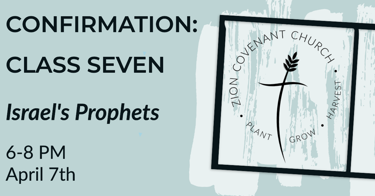 Our next confirmation class meets Sunday, April 7th from 6-8 PM. This month we are looking at Israel’s prophets—who were they, and what role did they play for God’s people?